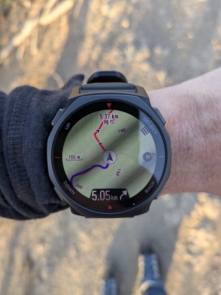 • 電池については輝度が上がったためか、T-Rex3より持ちが悪い印象ですが、それでも普段使いなら5日間持ちます。今回の登山ではGPS測位しながらでも100%→80%でした